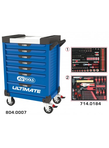 Servante ULTIMATE bleue 7 tiroirs équipée de 184 outils