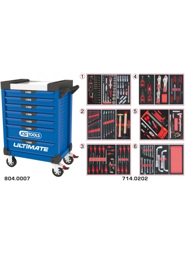 Servante ULTIMATE bleue 7 tiroirs équipée de 202 outils
