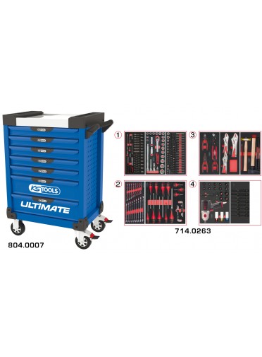Servante ULTIMATE bleue 7 tiroirs équipée de 263 outils