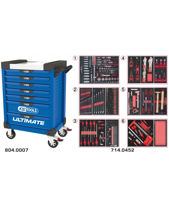 Servante ULTIMATE bleue 7 tiroirs équipée de 455 outils