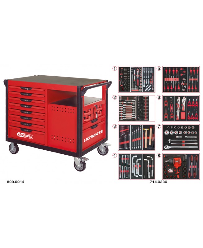 Etabli mobile 14 tiroirs équipé de 354 outils