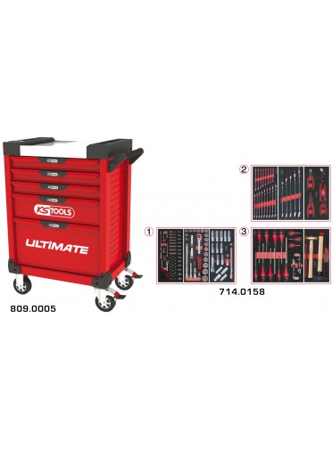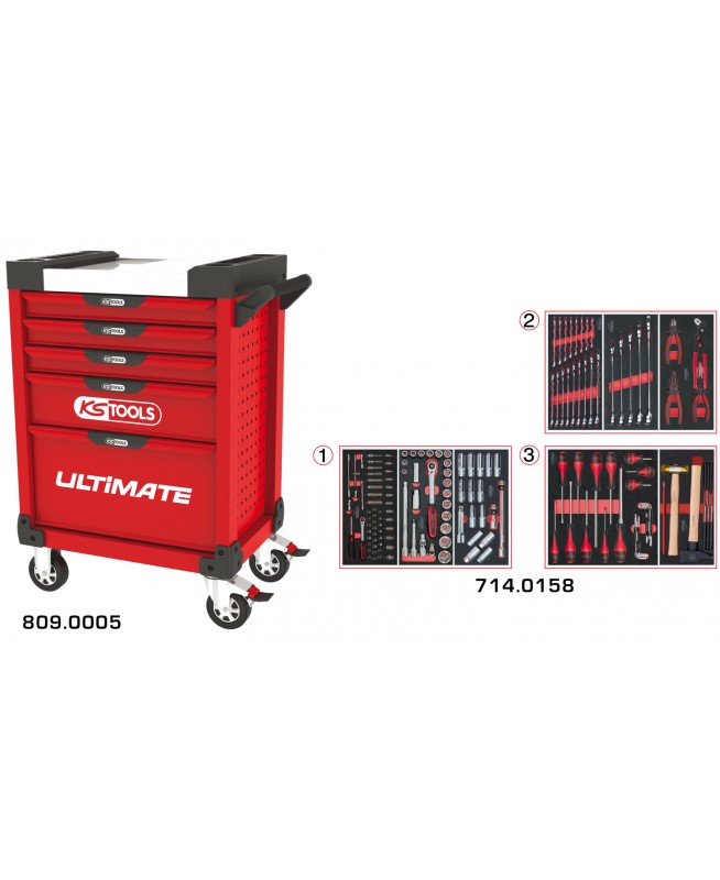 Servante ULTIMATE rouge 5 tiroirs équipée de 158 outils
