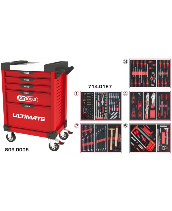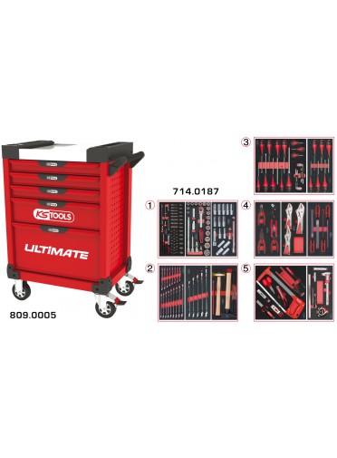 Servante ULTIMATE rouge 5 tiroirs équipée de 187 outils