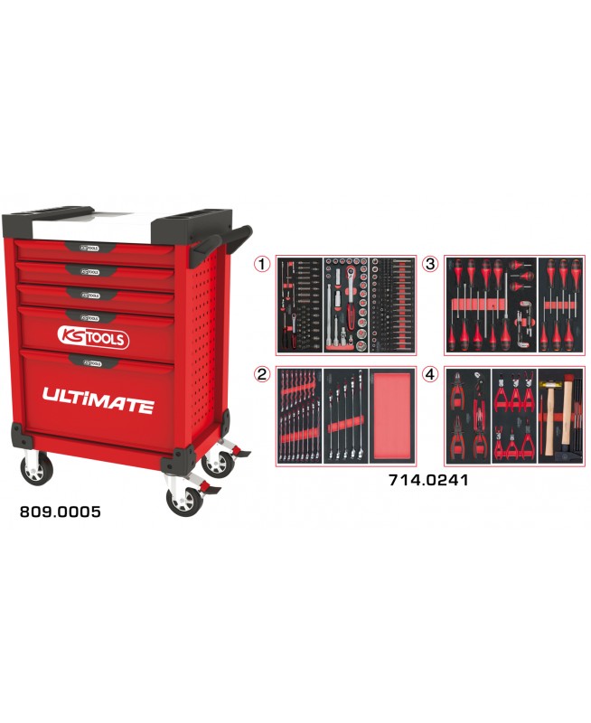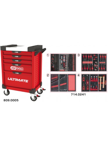 Servante ULTIMATE rouge 5 tiroirs équipée de 241 outils