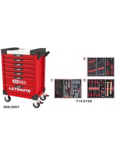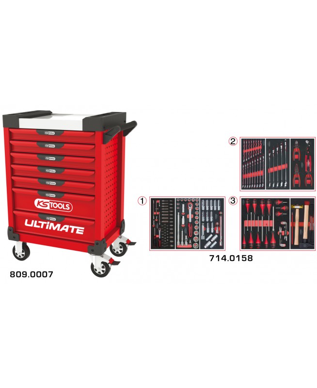 Servante ULTIMATE rouge 7 tiroirs équipée de 158 outils