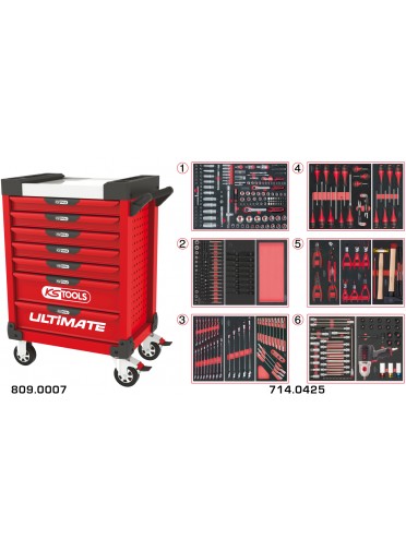 Servante ULTIMATE rouge 7 tiroirs équipée de 429 outils