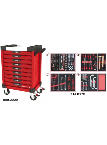 Servante ULTIMATE rouge 9 tiroirs équipée de 173 outils