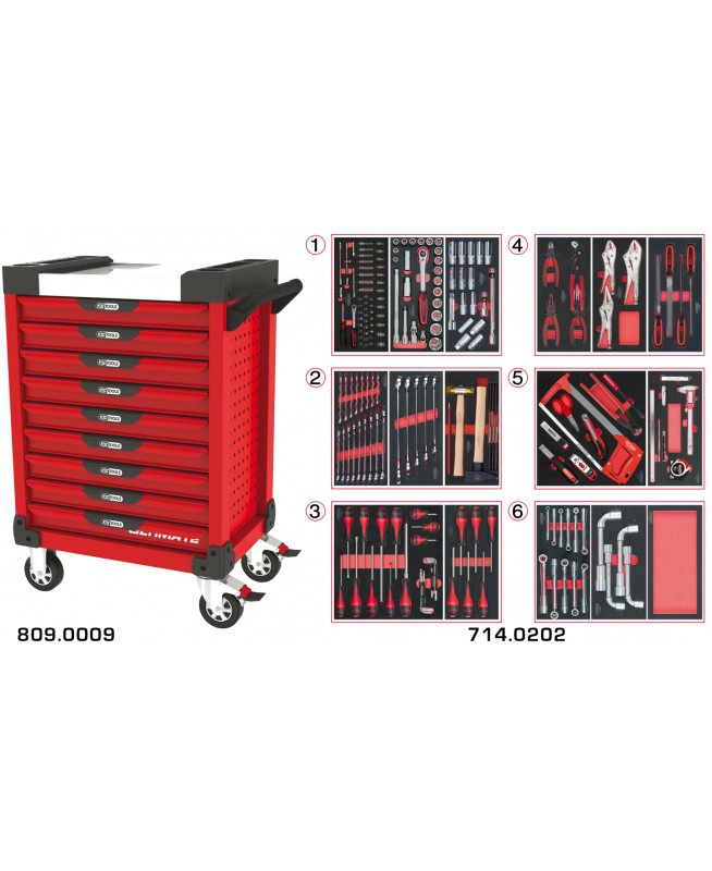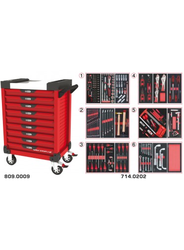 Servante ULTIMATE rouge 9 tiroirs équipée de 202 outils