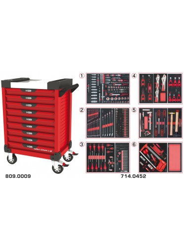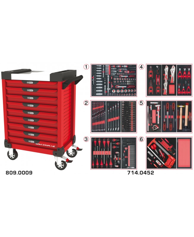 Servante ULTIMATE rouge 9 tiroirs équipée de 455 outils
