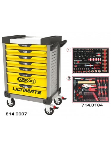 Servante ULTIMATE jaune et grise 7 tiroirs équipée de 184 outils
