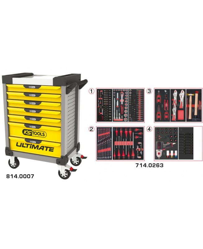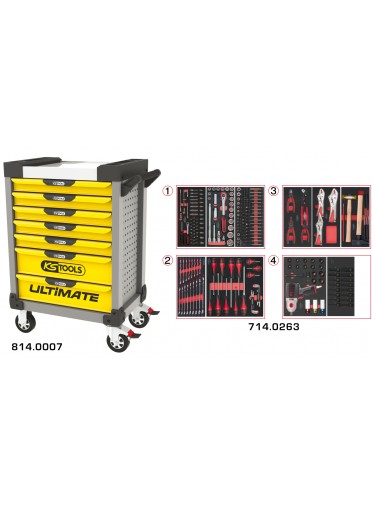 Servante ULTIMATE grise et jaune 7 tiroirs équipée de 263 outils