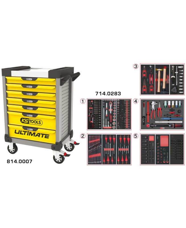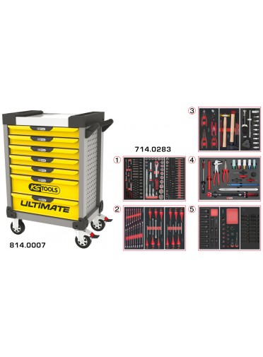 Servante ULTIMATE grise et jaune 7 tiroirs équipée de 283 outils