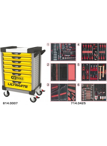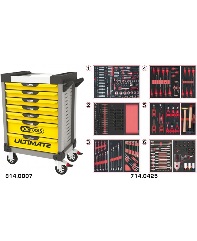 Servante ULTIMATE grise et jaune 7 tiroirs équipée de 429 outils