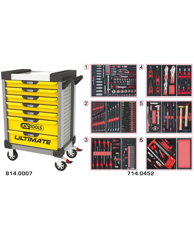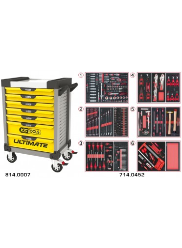 Servante ULTIMATE grise et jaune 7 tiroirs équipée de 455 outils