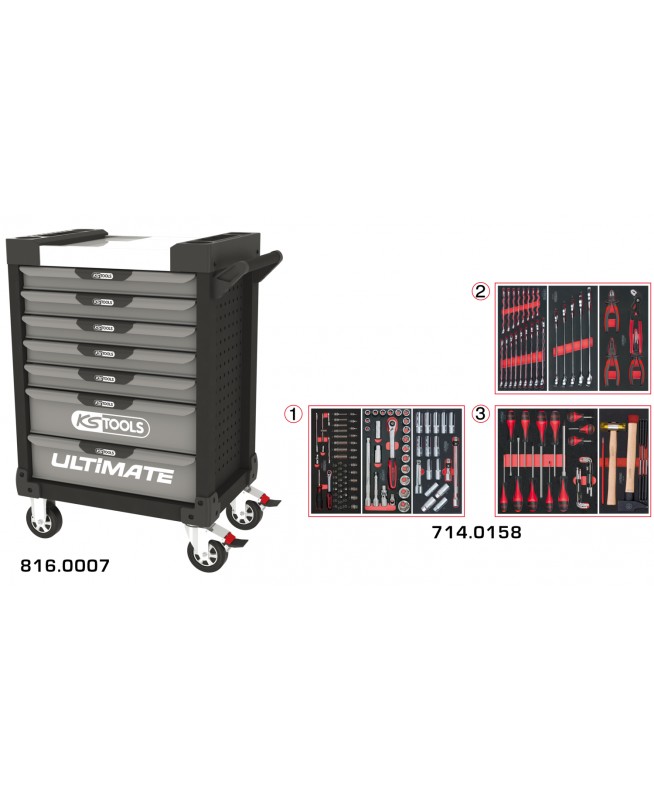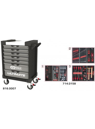 Servante ULTIMATE grise et noire 7 tiroirs équipée de 158 outils