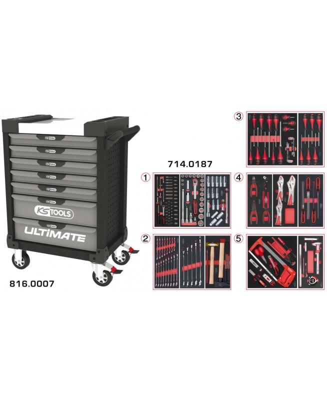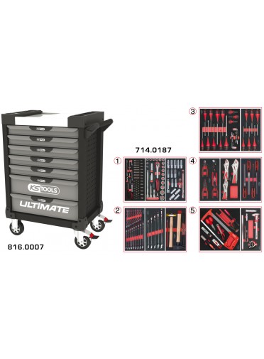 Servante ULTIMATE grise et noire 7 tiroirs équipée de 187 outils