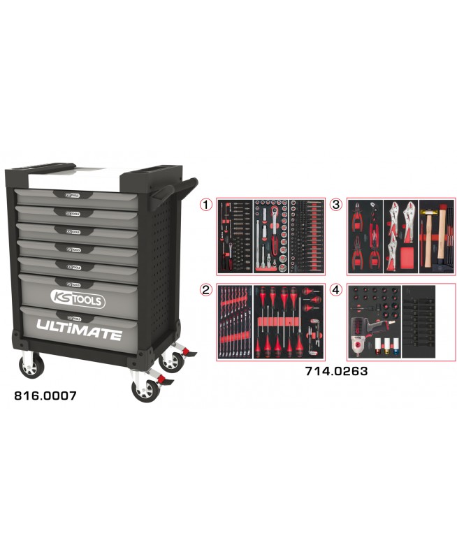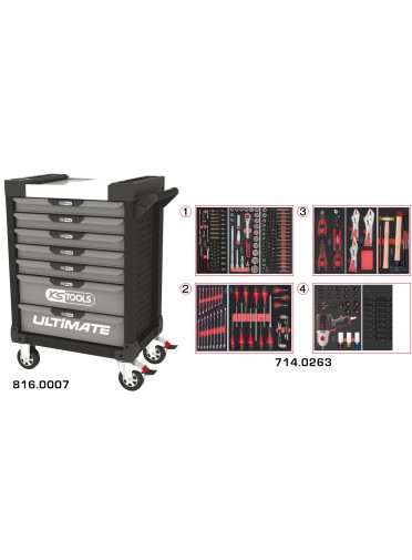 Servante ULTIMATE grise et noire 7 tiroirs équipée de 263 outils