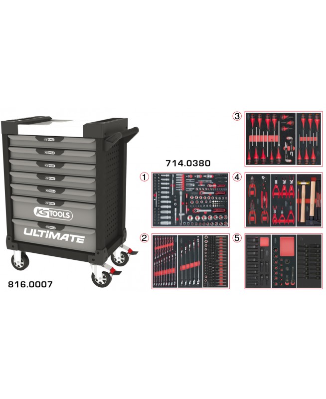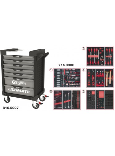Servante ULTIMATE grise et noire 7 tiroirs équipée de 384 outils