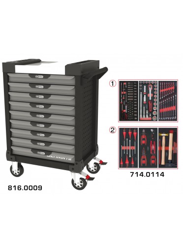 Servante ULTIMATE grise et noire 9 tiroirs équipée de 114 outils