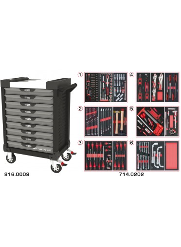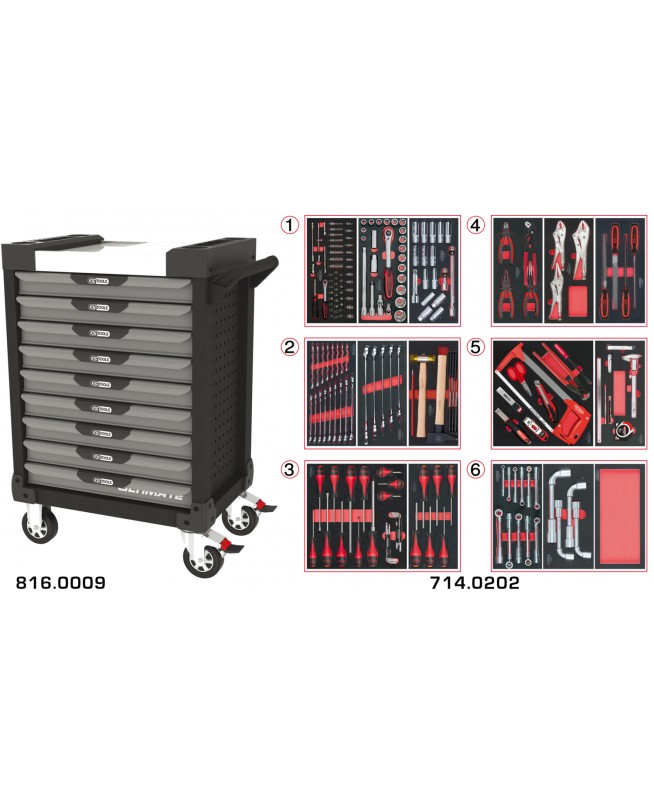 Servante ULTIMATE grise et noire 9 tiroirs équipée de 202 outils