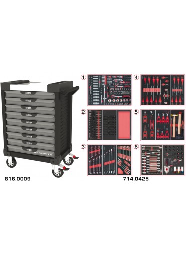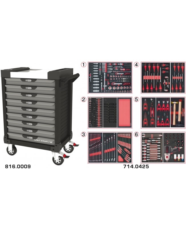 Servante ULTIMATE grise et noire 9 tiroirs équipée de 429 outils