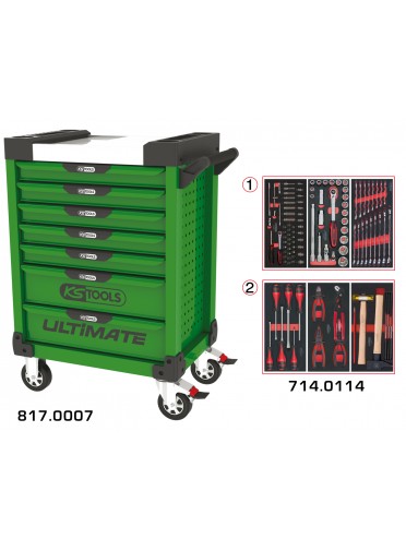 Servante ULTIMATE verte 7 tiroirs équipée de 114 outils