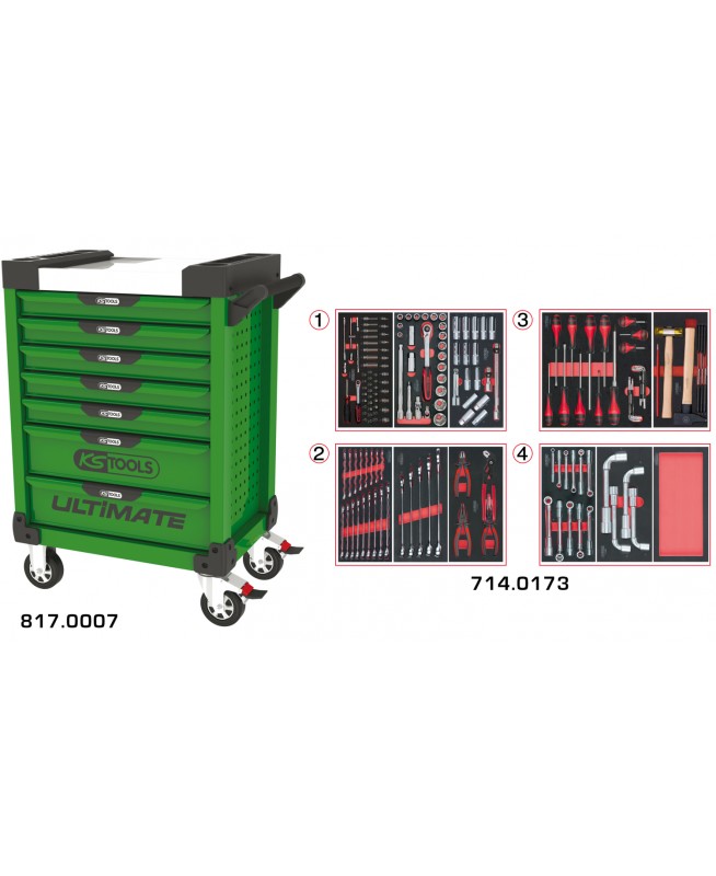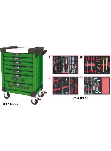 Servante ULTIMATE verte 7 tiroirs équipée de 173 outils