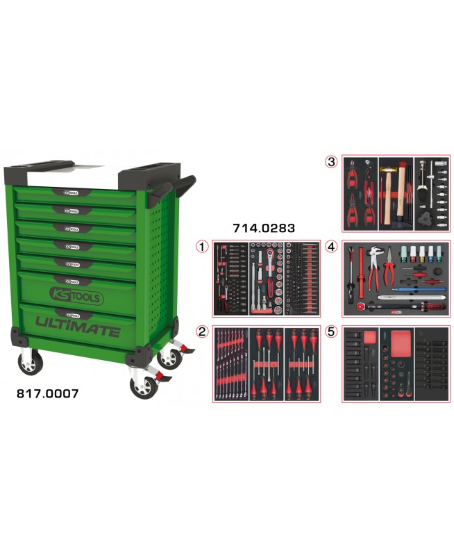 Servante ULTIMATE verte 7 tiroirs équipée de 283 outils