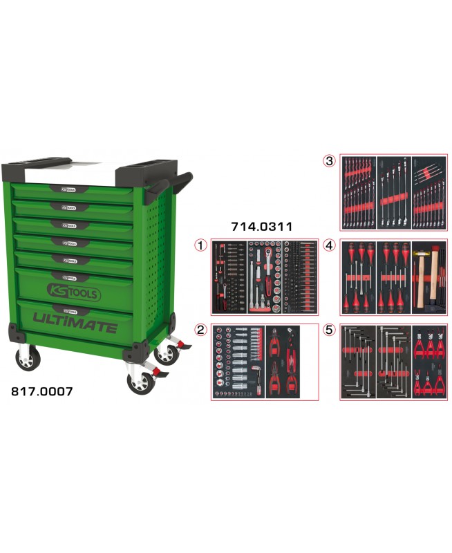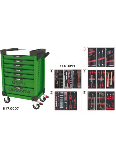 Servante ULTIMATE verte 7 tiroirs équipée de 311 outils