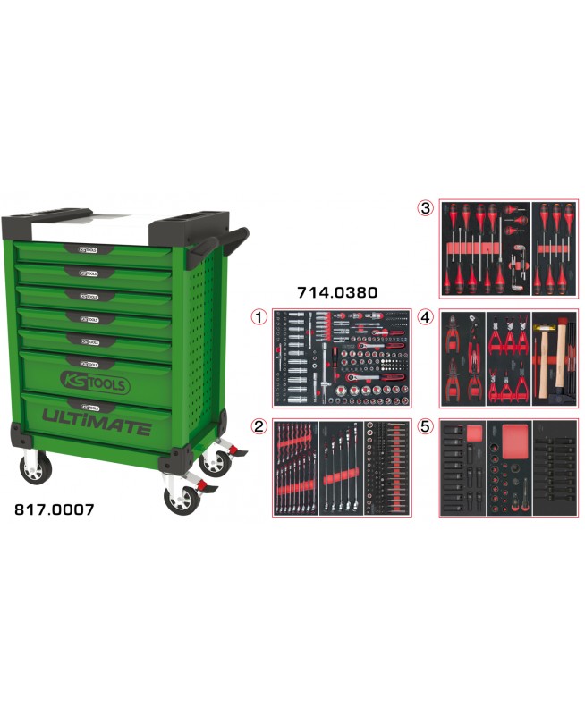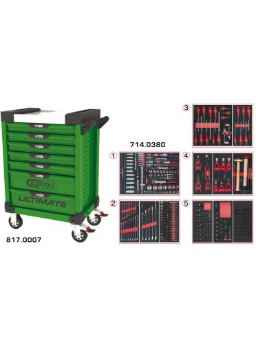 Servante ULTIMATE verte 7 tiroirs équipée de 384 outils