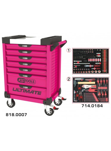 Servante ULTIMATE rose 7 tiroirs équipée de 184 outils