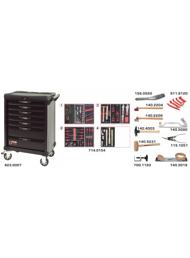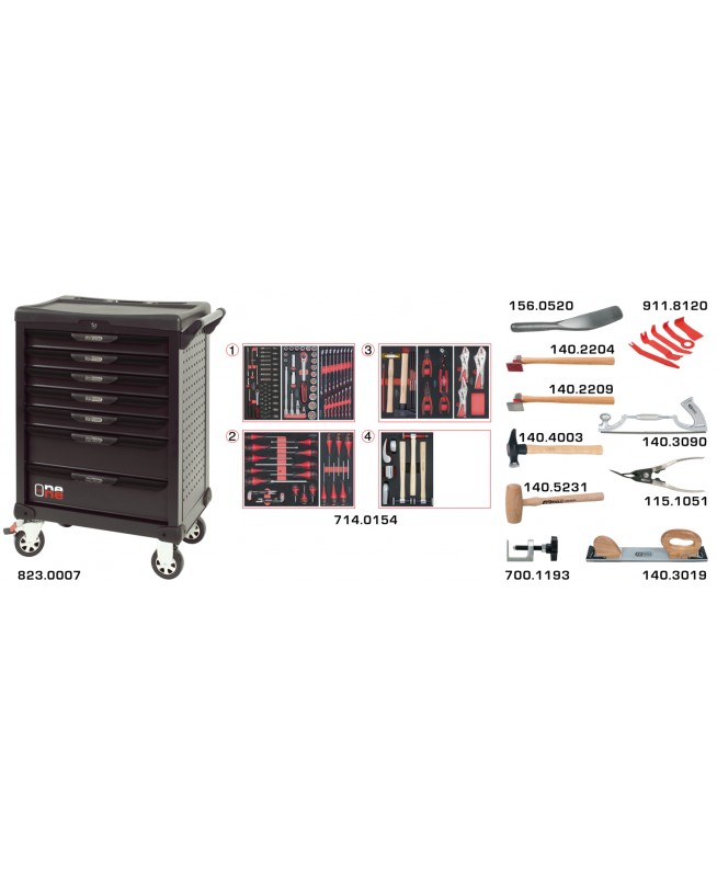 Servante OnebyOne 7 tiroirs composée d’outils pour la carrosserie. 166 pièc