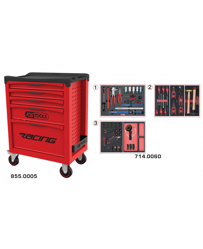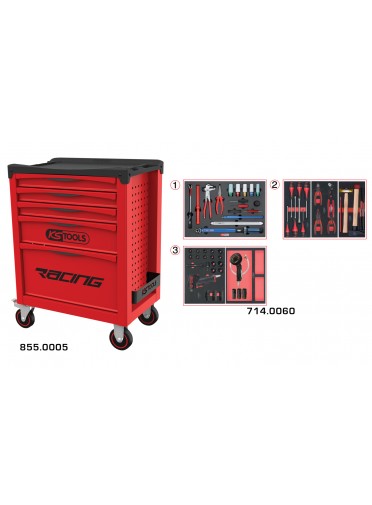 Servante RACING 5 tiroirs équipée de 60 outils - spéciale Roue