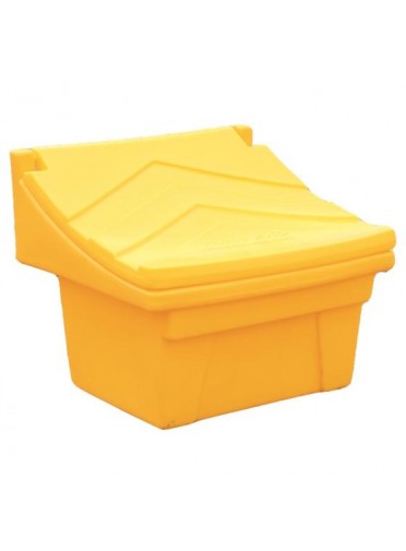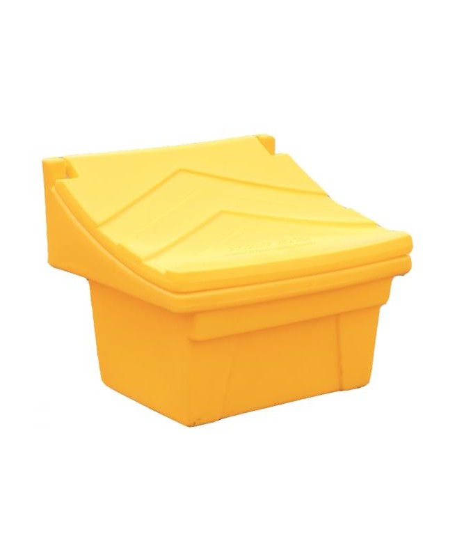 Coffre à sable, sel ou granulés, volume 100 litres. Fabriqué en polyéthylène haute qualité avec couvercle sur charnières PE. Dimensions : 720 x 690 x H600 mm, coloris jaune.