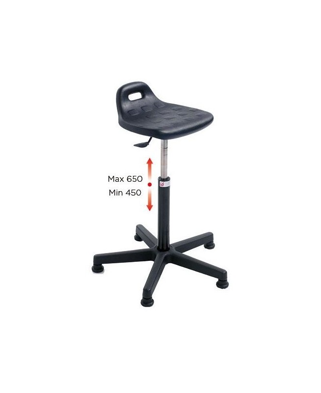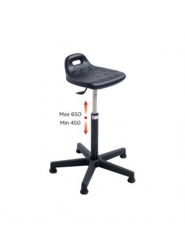 TABOURET D'ATELIER CONFORT H 450 - 650 mm assise en polyurethane noir