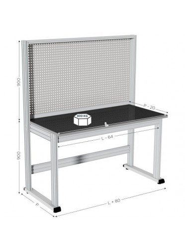MAINTPOST 6000B l 2000 x P 750 x H 1800 mm avec plateau en stratifié et fond arrière tôle perforée