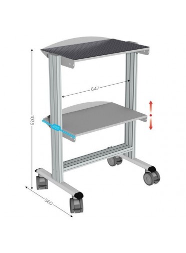 Servante mobile l 740 x P 560 x H 1035 mm de 2 niveaux avec revêtement caoutchou