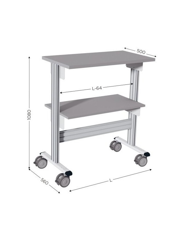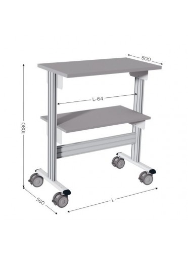 DESSERTE PICKING l 900 x P 560 x H 1080 mm de 2 niveaux sur roulettes