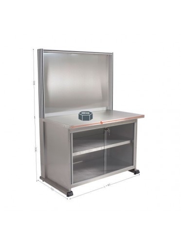 QUALIPOST 3500D INOX l 2000 x P 750 x H 1800 mm avec rangement inférieur et fond arrière