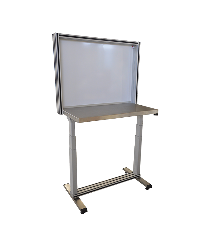 QUALIPOST 650 ERGO INOX l 1500 x P 500 x H 775 - 1300 mm avec plateau INOX