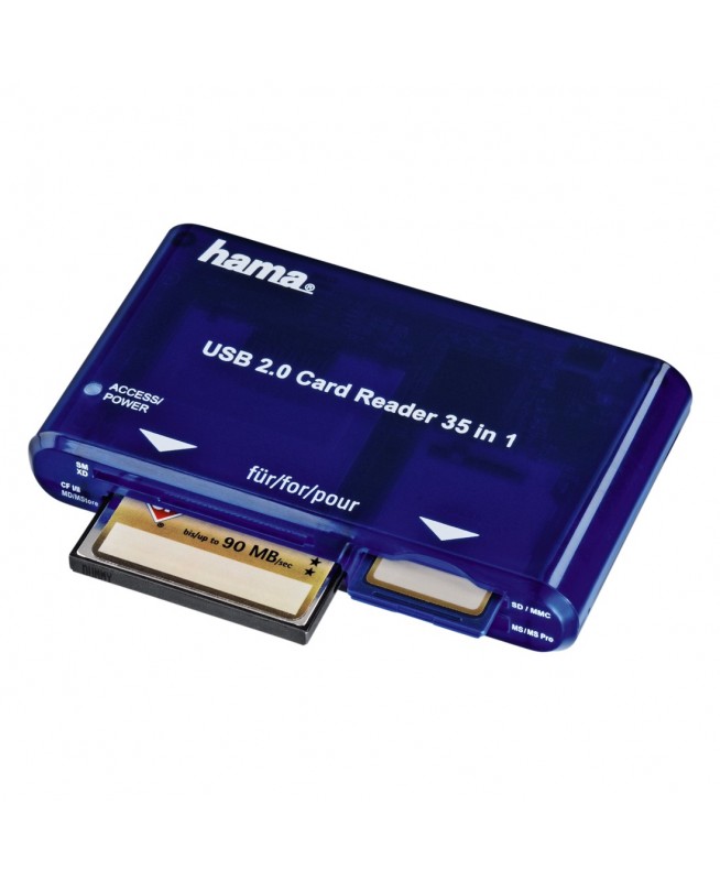 Hama Lecteur USB 2.0 "35en1" (USB, lecteur cartes multiples, Lecteur de carte SD, SDHC, SDXC, Type I / II CF, MMC) Bleu
