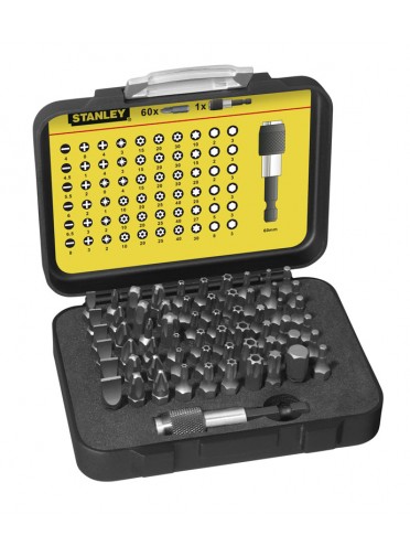 Fente : 4 - 4,5 - 5,5 - 6 - 6,5 - 8 mm - PH 0 - PH1 - 2 x PH2 - 2 x PH3 - PH4 - PZ1 - 2 x PZ2 - 2 x PZ3 - PH4 - Torx : 10 - 15 - 20 - 25 - 27 - 30 - Tamper proof Torx : 3 x T10 - 3 x T15 - 6 x T20 - T25 - T30 - T40 Hexagonal : 2 x 3 - 4 - 5 - 3 x 6 - 8 mm + Porte douilles adaptateur 50mm + Porte Embout Magnétique 60mm