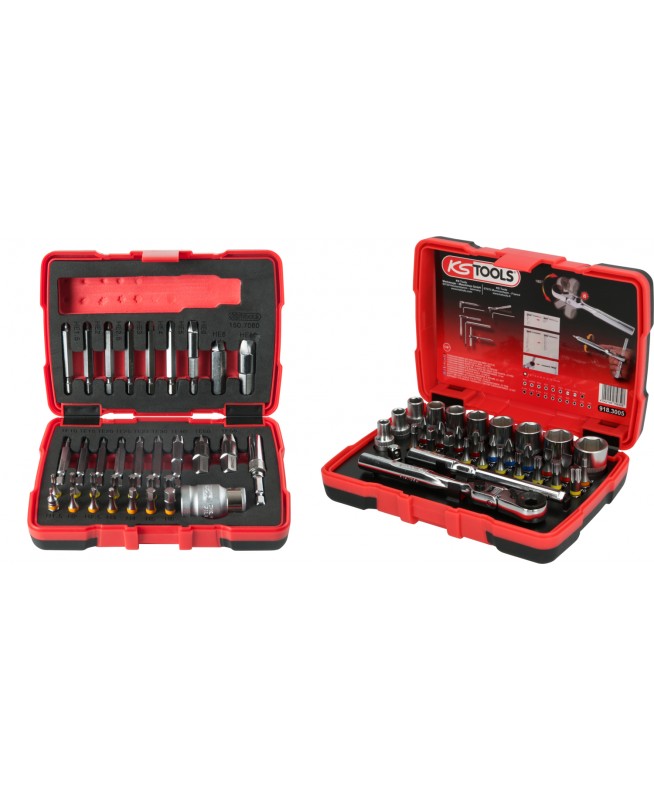 Jeu d'embouts et douilles 1/4'' + Coffret d'extraction pour vis TORX® et 6 pans