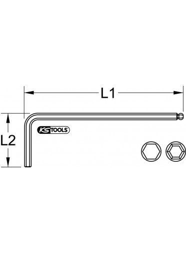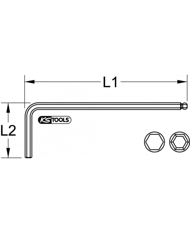 Clé mâle 6 pans à tête sphérique longue, 19 mm