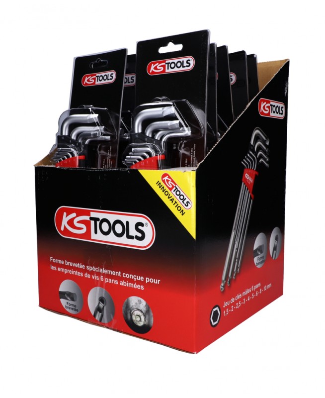 Display de 10 jeux de 9 clés mâles pour vis abimées 6 pans