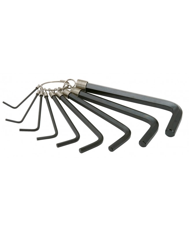 Jeu de clés mâles 6 pans sur anneau, 9 pièces