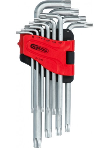 Jeu de 10 clés mâles TORX® percé longue, TB8 à TB50