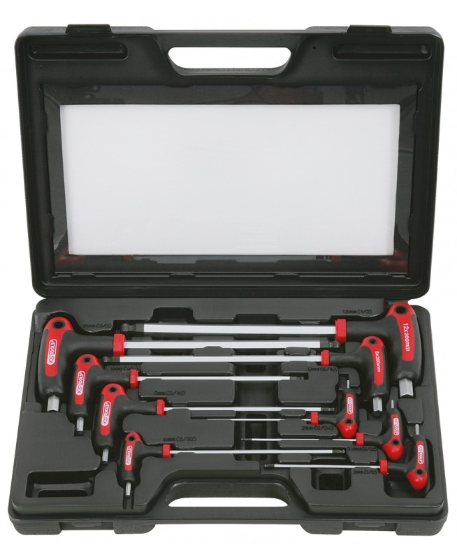 Jeu de clés mâle 6 pans à tête sphérique à poignée en T, 9 pcs