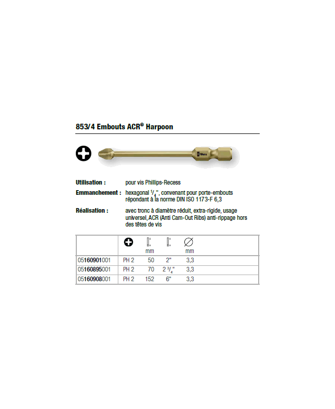 Embout acr harpoon 853/4 ph2 longueur 152mm